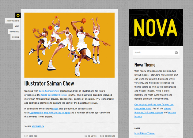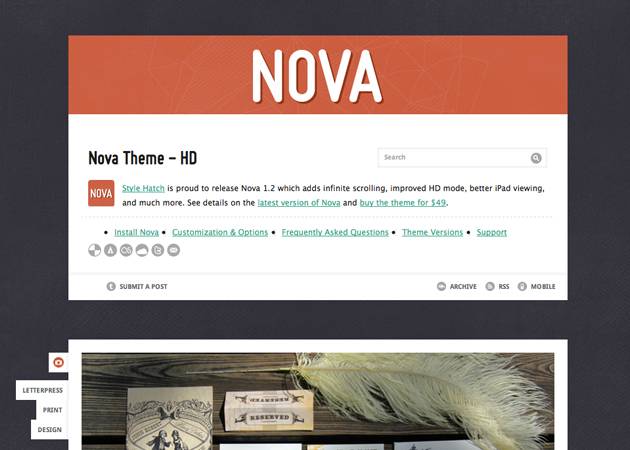 Although Nova looks incredible with a fresh install, you have the option to customize the nearly 50 appearance option, choose from the standard two column layout and a HD-wide one column layout, enable infinite scrolling, customize colors, upload background and header images, choose between the dark and light styles, and much more.