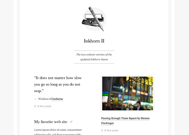 Inkhorn is a handsome theme with a focus on simplicity and readability.