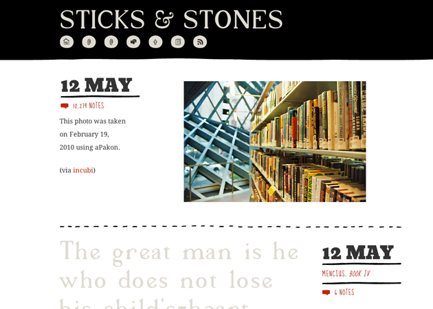 Sticks & Stones is a completely handmade theme. With custom fonts, custom icons and all your favourite social media, it's perfect for any illustrator, designer or blogger looking for a theme with unique personality.