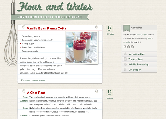 Flour & Water was specifically designed with the foodie, chef, and connoisseur in mind. With customizable colors and full social media support, Flour & Water is a flexible theme for all matters culinary.