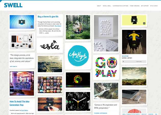 Swell premium Tumblr theme matches the experience of the Tumblr archive mode with ultimate customization and insane customer support from Style Hatch. Clicking on any of the posts in the grid will launch a lightbox window that displays the post details without having to navigate to a new page.