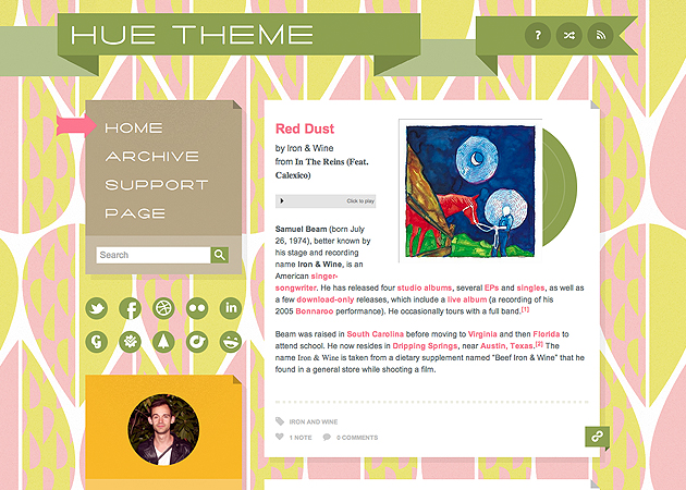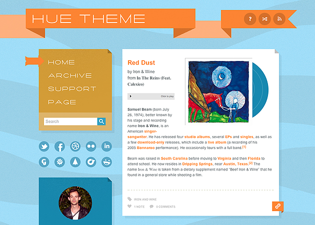 Hue is friendly, textured, and wildly colourful theme, featuring three different colour schemes, and a customizable background.