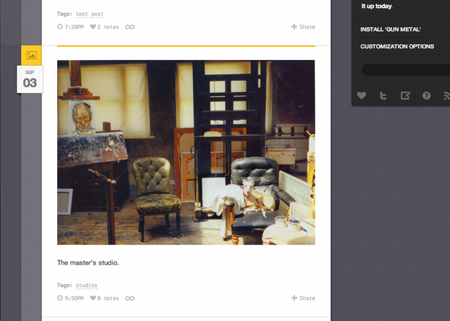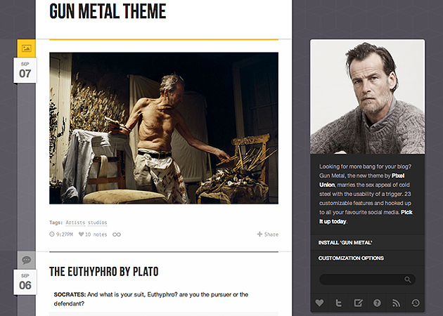 Looking for more bang for your blog? Gun Metal, the new theme by Pixel Union, marries the sex appeal of cold steel with the usability of a trigger.
