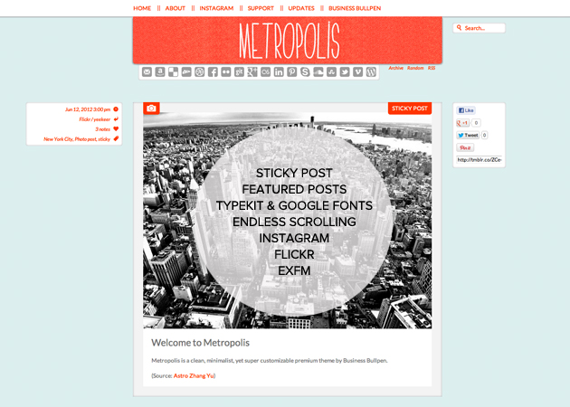 Like our other themes, Metropolis offers features that no other themes provide: the Sticky Post and Featured Posts.