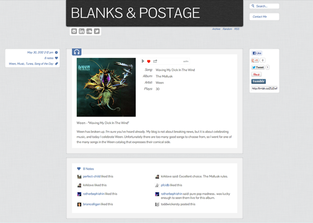 - Sharing: Facebook, Twitter, Pinterest, Google+, and Tumblr