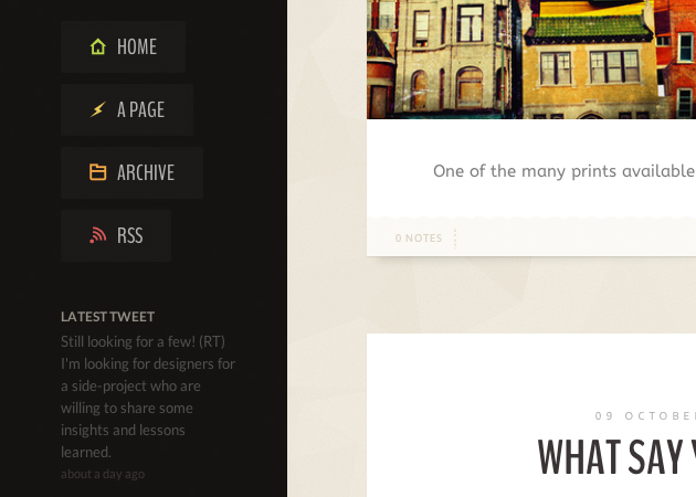 Customizable Sidebar - Along with the Twitter Feed, you can include your social icons, an optional about section, and ofcourse: your very own avatar.