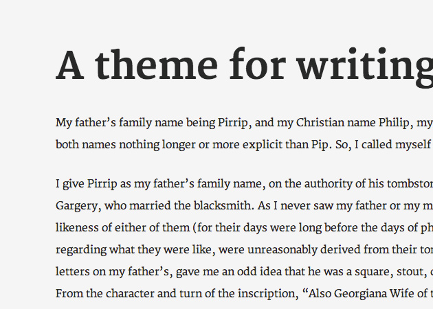 This is a theme made for writing. It features a relaxed, minimalistic design to allow the content to shine and keep distractions to a minimum.