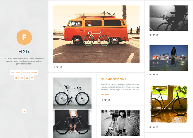 FIXIE’s layout adapts to fill your whole screen with posts - from the smallest mobile or tablet to the largest cinema display… resize your browser and see for yourself!