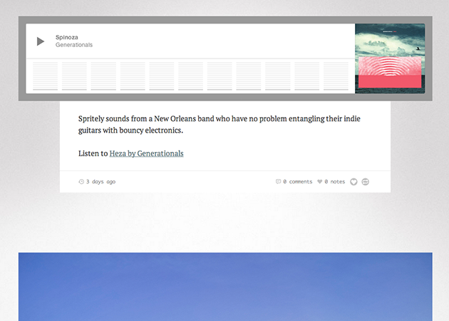 We built into Byron the ability to load up other social features that make it easier to show what you do outside of Tumblr, share your posts and allow people to add comments. Byron comes with support for Twitter’s widgets, Instagram feed, Disqus comments and easy ways to share, like and pin your posts on Twitter, Facebook, Google Plus and Pinterest.
