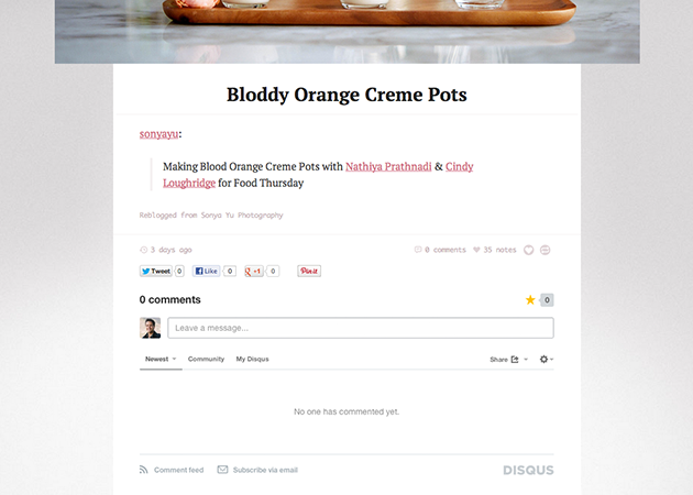 With every premium theme by Style Hatch we have built in Disqus comments. Disqus is by far the easiest to add comments to your Tumblr blog, and your users can use Facebook, Twitter, Google or Disqus to log in and leave comments on your posts.