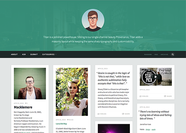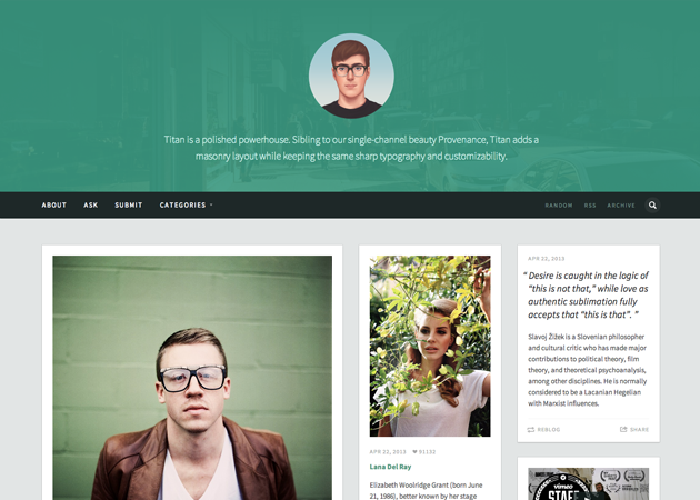 Titan is a polished powerhouse. Sibling to our single-channel beauty Provenance, Titan adds a masonry layout while keeping the same sharp typography and customizability.