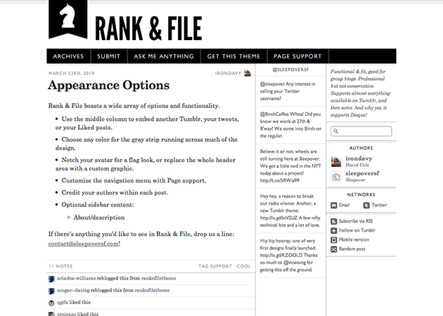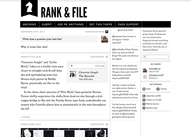 Functional & fit, good for group blogs. Professional but not conservative. Boasts a wide array of options and functionality: